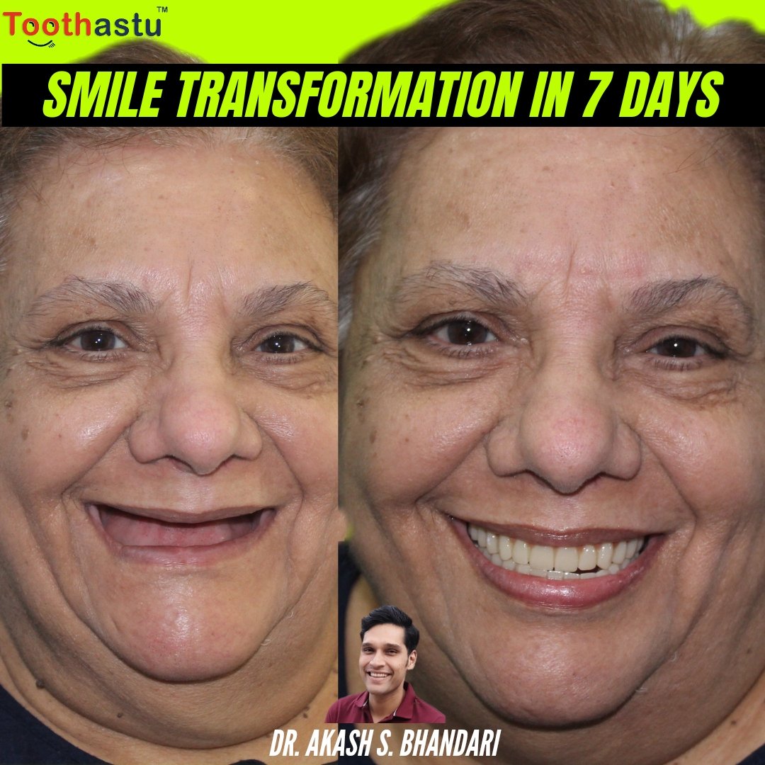 Toothastu Dental Implant Clinic in Mumbai specializes in providing the Highest Quality of Painless Dental Care and Implant Rehabilitations to our patients at Affordable prices & giving that healthy glowing smile. Our center offers state of the art cosmetic dentistry treatments like metal free crowns and veneers, but our most popular treatment is our pioneered “FIXED TEETH FOR ALL WITHIN 1 WEEK” dental implant restoration.